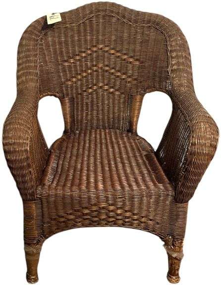 LOT 62 - WICKER CHAIR WITH GREEN CUSHION
