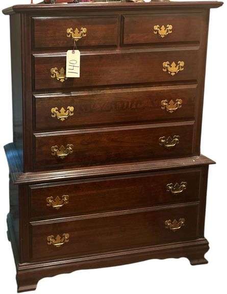 LOT 140 - WOODEN 7-DRAWER CHEST OF DRAWERS W/ BRASS PULLS