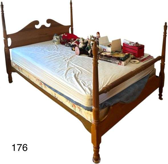 LOT 176 - FULL SIZE POSTER BED - MATCHES LOTS 166 AND 162 (CHRISTMAS ITEMS ON MATTRESS NOT INCLUDED)