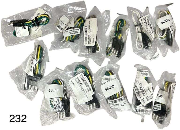 LOT 232 - CURT 58030 TRAILER-SIDE 4-PIN FLAT WIRING HARNESSES W/ 12” WIRES