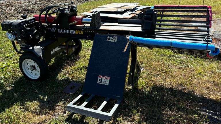 LOT 145 - RUGGED SPLIT 37-TON LOG SPLITTER W/ 4-WAY & 6-WAY SPLITTERS - RAVEN 420CC 15.0HP ENGINE - ONLY 12.7 HOURS - WORKING, SEE VIDEO
