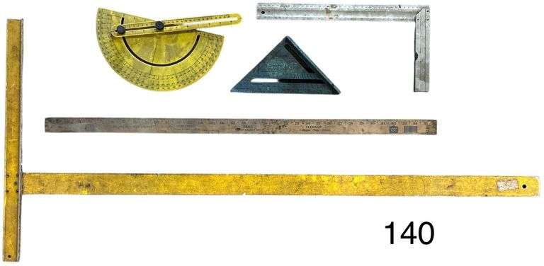 LOT 140 - T-SQUARE, YARDSTICK, 2 SMALLER SQUARES, PROTRACTOR