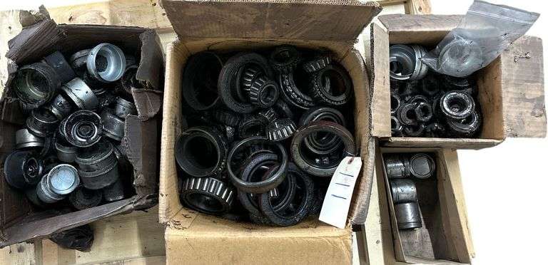 LOT 111 - WHEEL BEARINGS OF ASSORTED SIZES, GREASE CAPS, CASTLE NUTS, ETC.
