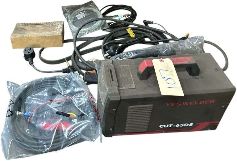 LOT 107 - YESWELDER CUT-65DS ARC PLASMA CUTTER W/ TORCH, WELDING CABLE, AND OTHER ACCESSORIES