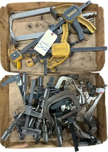 LOT 81 - ASSORTMENT OF DEWALT TRIGGER CLAMPS, C-CLAMP, SCREW CLAMPS, VISE-GRIP CLAMPS, ETC.