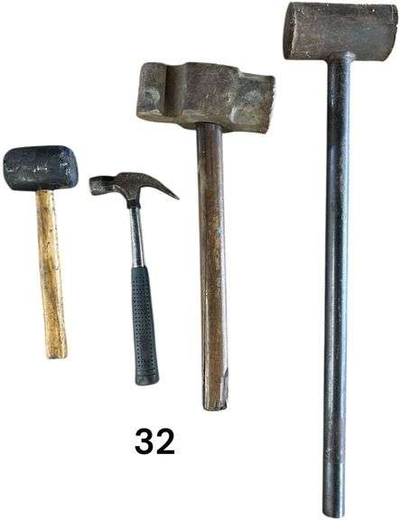 LOT 32 - RUBBER MALLET, CLAW HAMMER, BLACKSMITH HAMMER, LARGE METAL HEAVY DUTY MALLET